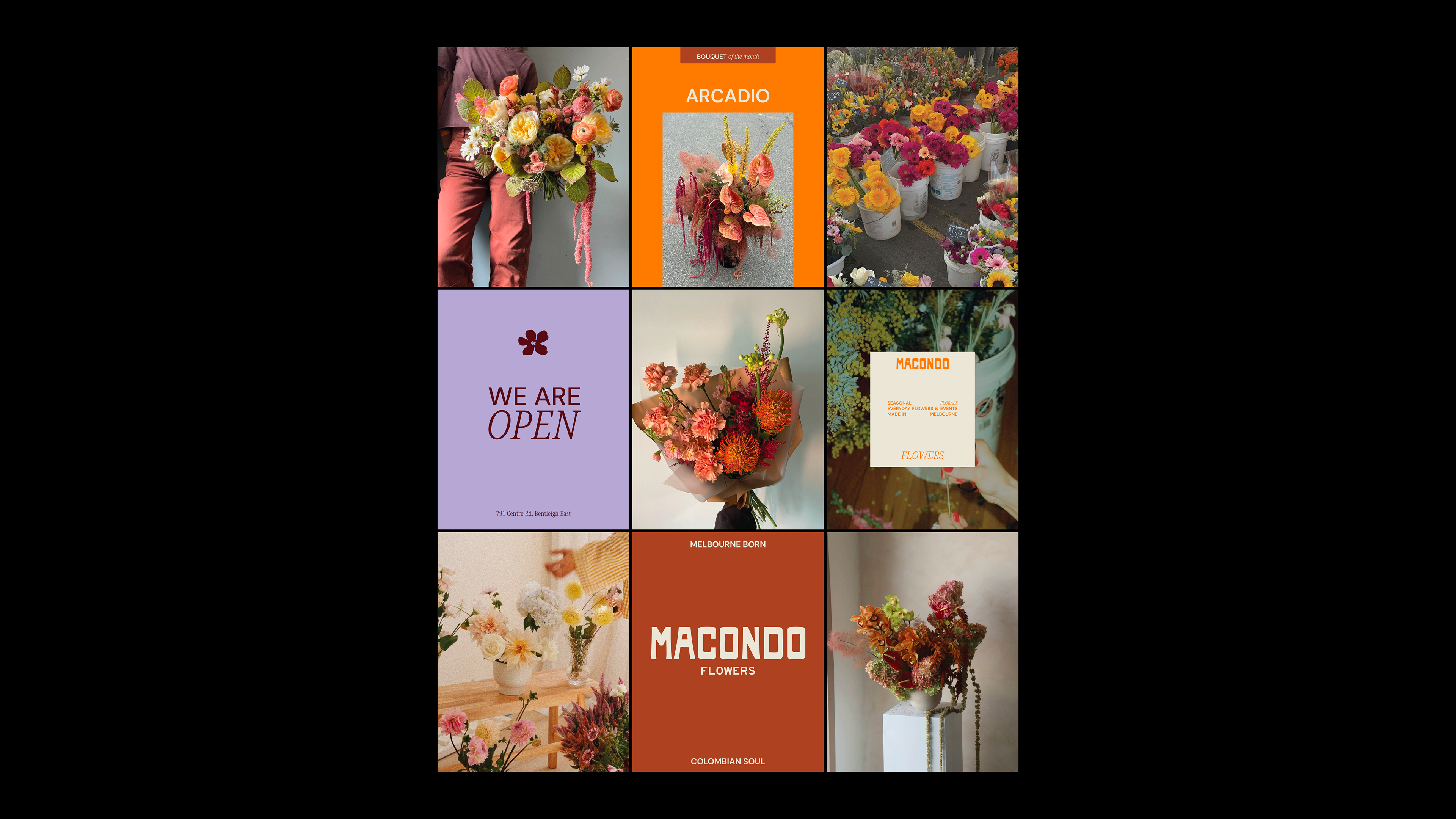 Macondo Flowers is a Melbourne-based florist brand inspired by Colombian culture and the beauty of everyday moments. The identity was designed to feel warm, expressive, and nostalgic, while remaining contemporary and versatile.